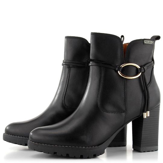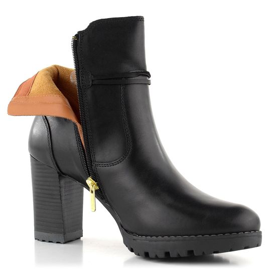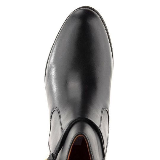 Luxusní dámský kožený kotník na podpatku, s vnitřním zipem a pěknou kovovou ozdobou na vnějším boku.
