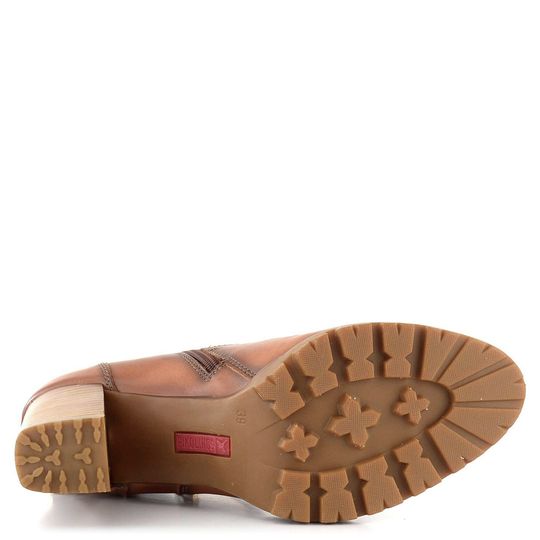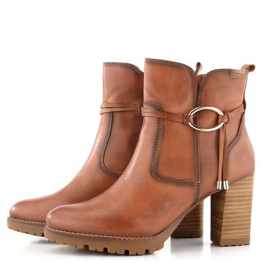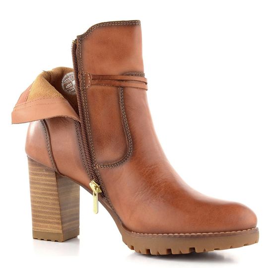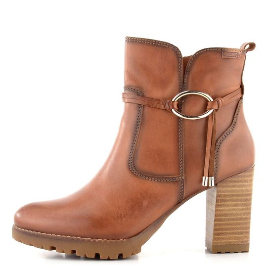Luxusní dámský kožený kotník na podpatku, s vnitřním zipem a pěknou kovovou ozdobou na vnějším boku.