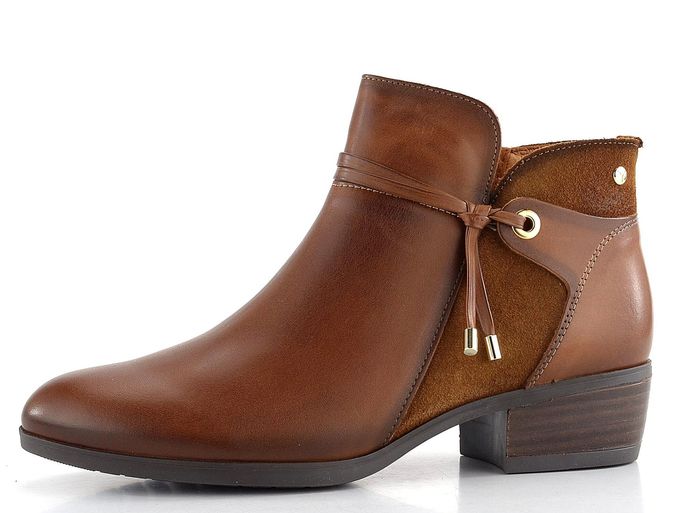 Dámské kotníkové boty značky Pikolinos nabízí komfort a styl v jednom. Tyto boty jsou ideální pro podzimní a zimní sezónu díky jejich kvalitnímu provedení. Svršek z hladké kůže v kombinaci se semišem dodává obuvi elegantní vzhled, zatímco středně hnědý odstín se stínováním zajišťuje univerzálnost. Boty mají kulatější, prostornou špičku, která poskytuje dostatek místa pro prsty. Funkční zip na vnitřní straně usnadňuje obouvání. Vnitřní podšívka ze zabroušené textilie s koženými lemy a měkkou koženou stélkou zaručuje pohodlí po celý den. Flexibilní a dobře konstrukčně řešená podešev poskytuje stabilitu a optimální 4 cm vysoký podpatek dodává potřebnou výšku bez ztráty pohodlí. Výška kotníku 9 cm (v patní části, bez podpatku) zajišťuje dostatečnou oporu. Tyto boty jsou ideální volbou pro každodenní nošení do města, kanceláře i na lehkou procházku.