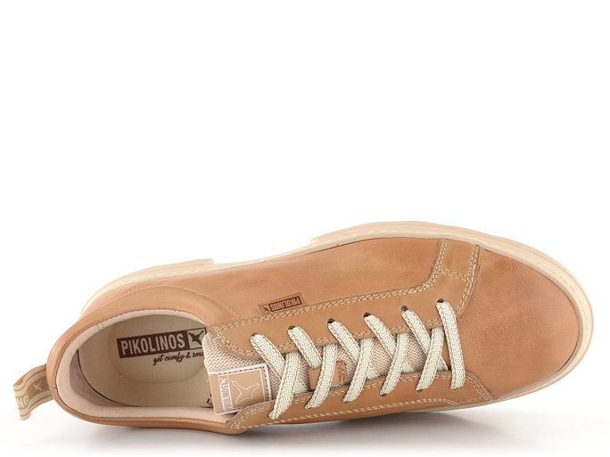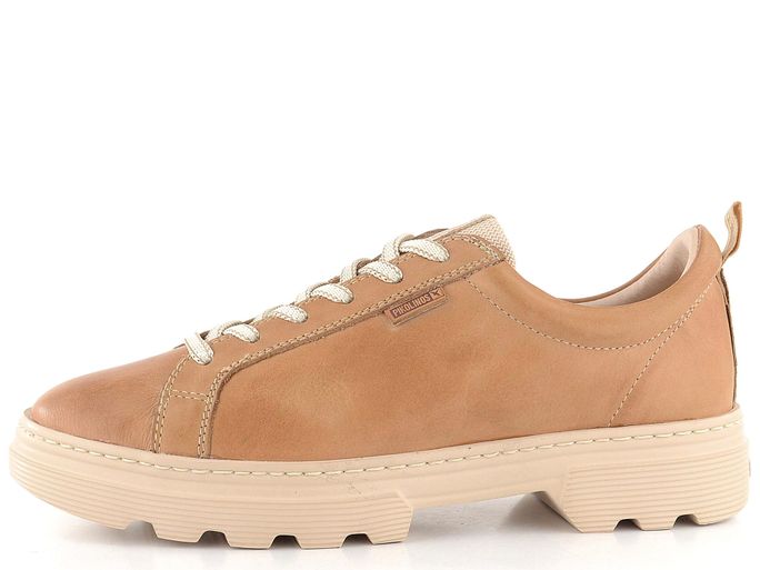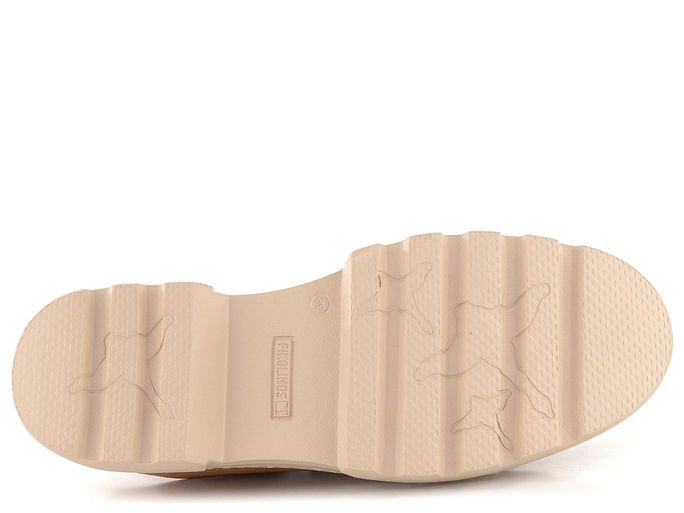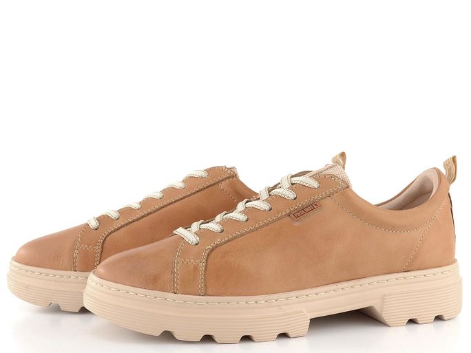 Dámské kožené polobotky v mandlově hnědé barvě, s vysokou hrubou podešví a vyjímatelnou stélkou.