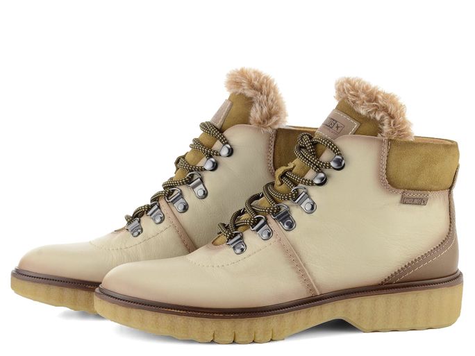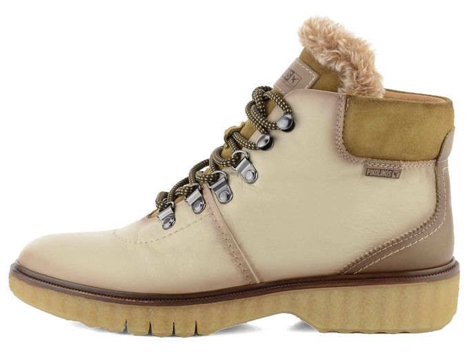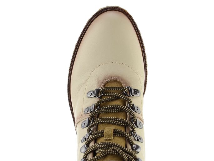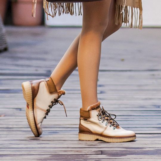 Dámský městský kotník v zajímavém odstínu smetanové barvy a na hrubší surové podešvi.