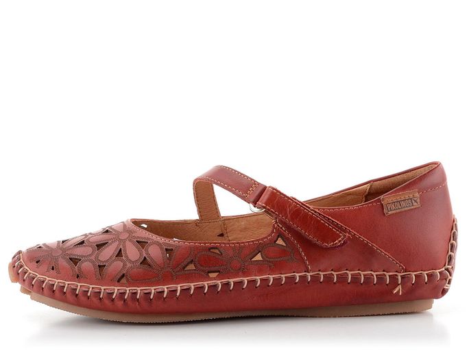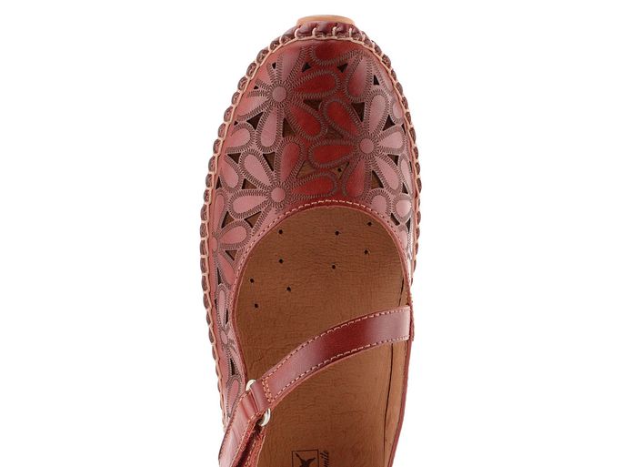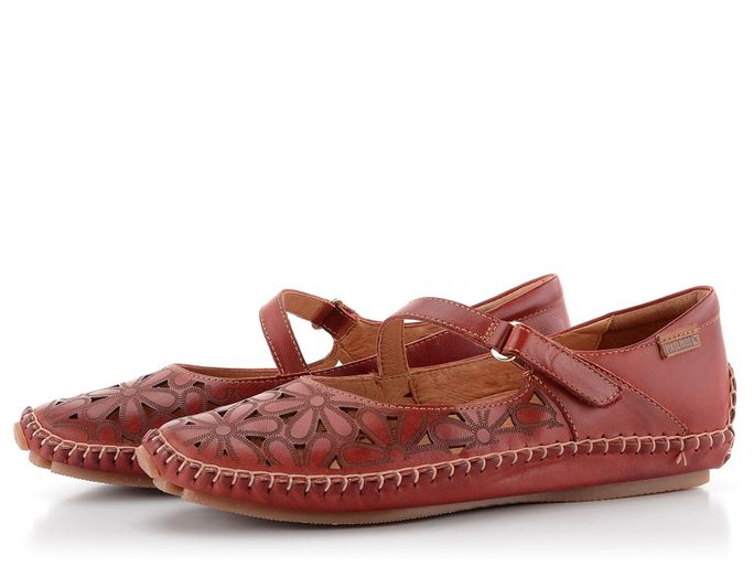 Dámské baleríny ozdobené květinovým vzorem a prošívaným rámem.