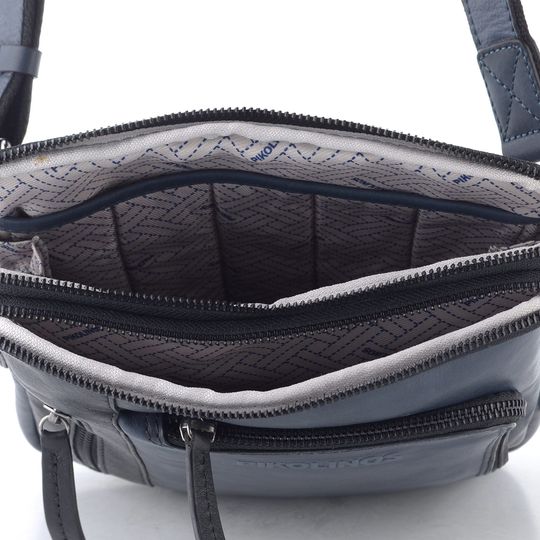 Praktické detaily, jako jsou dvě zipové kapsy na přední straně a zipová kapsa na zadní straně, zaručují bezpečné uložení vašich cenností. Dvě hlavní kapsy uzavíratelné na zip obsahují polstrovanou přihrádku na tablet a další přihrádky na karty. Odepínatelný kožený ramenní popruh s regulací délky (85-145 cm) zajišťuje pohodlné nošení. S rozměry 27 x 24 x 5 cm se stane vaší oblíbenou volbou pro každou příležitost.