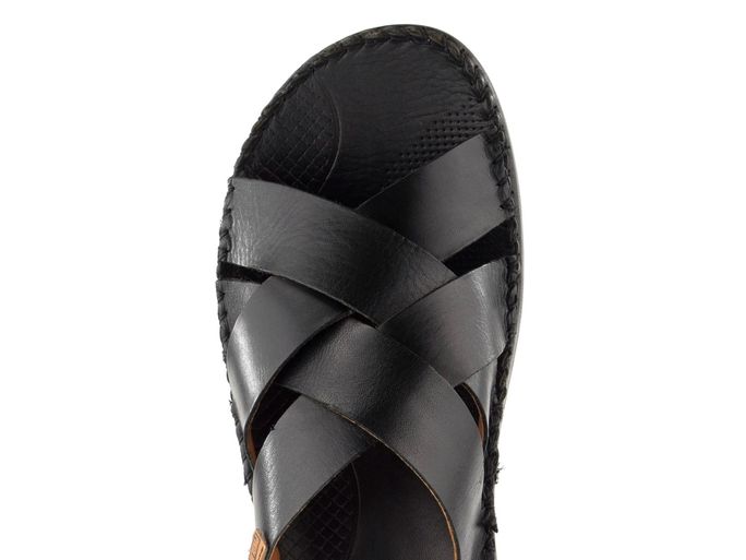 Pánské vycházkové pantofle v černé barvě s proplétanými koženými pásky.