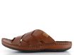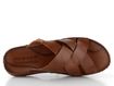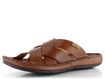Pánské vycházkové pantofle v tmavším hnědém odstínu s proplétanými koženými pásky.