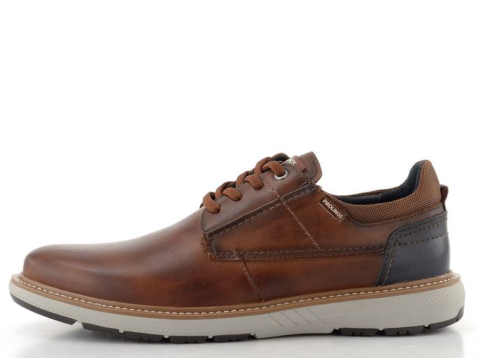 Pánské šněrovací polobotky značky Pikolinos představují ideální volbu pro muže, kteří hledají kombinaci stylu a komfortu. Jejich kulatý prostorný střih zajišťuje pohodlné nošení po celý den, zatímco svršek z kvalitní poddajné kůže a textilní lem dodávají elegantní vzhled. Pěkný odstín přírodní hnědé barvy s tmavě modrými doplňky se skvěle hodí k různým outfitům, ať už se chystáte do kanceláře nebo na příjemnou procházku.