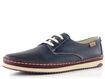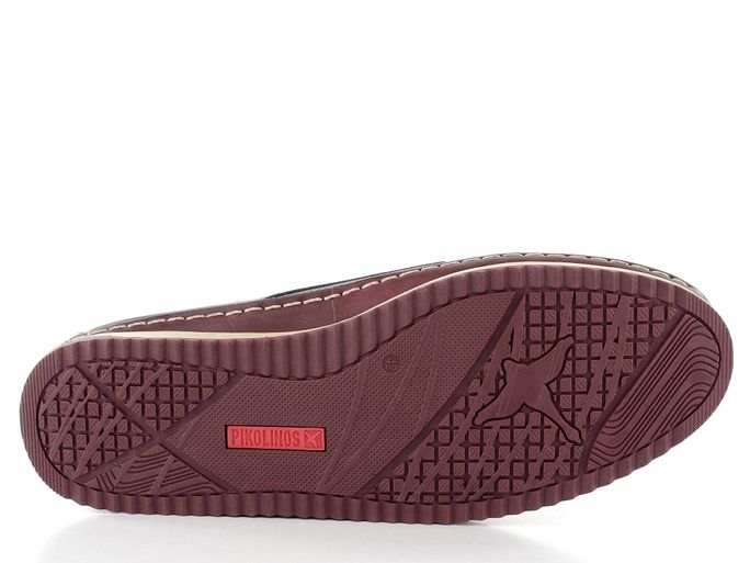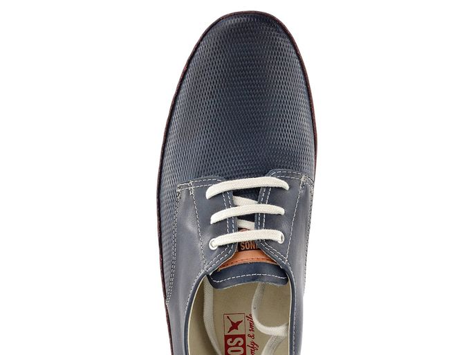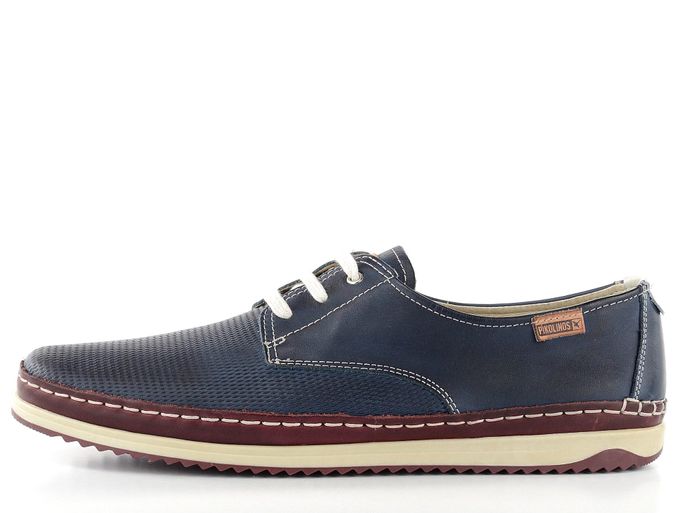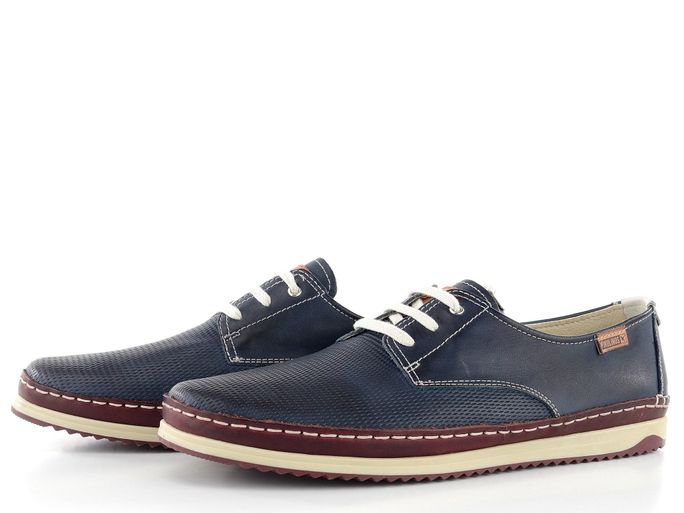 Pánské flexibilní a poddajné polobotky z hladké kůže v tmavě modré barvě s vínovými doplňky.