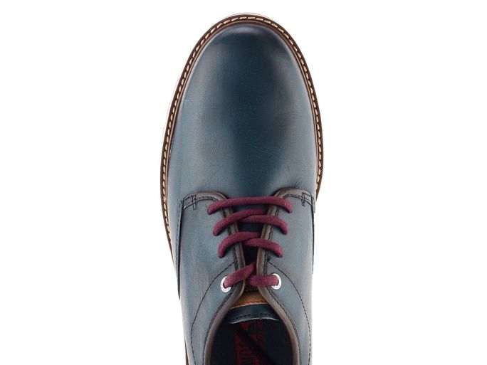 Pánské stylové polobotky v jeans modré barvě s hnědými doplňky a s kontrastní podešví.