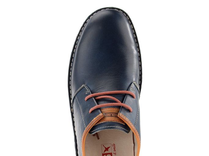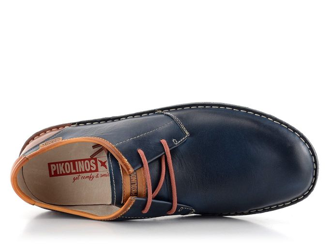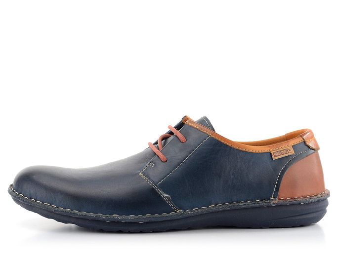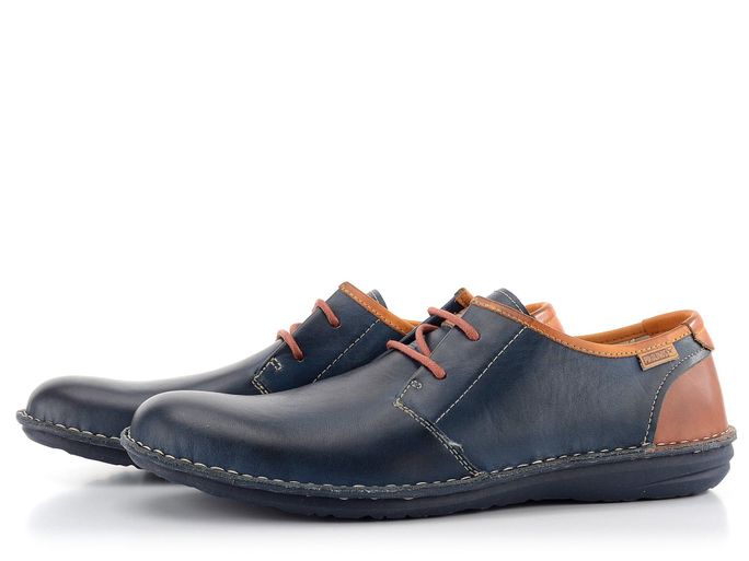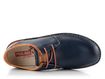 Pánské pohodlné šněrovací polobotky v tmavě modré barvě s hnědými doplňky.