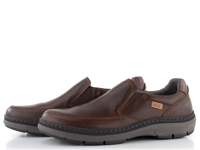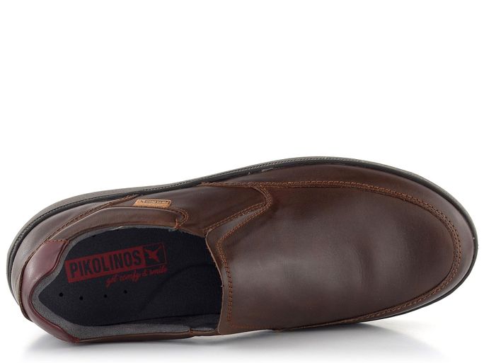 Pohodlné pánské kožené prozouvací polobotky v hnědé barvě se dvěma pružinkami na nártu.