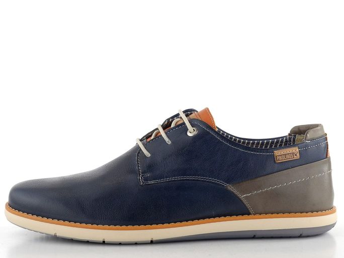 Pánské šněrovací polobotky značky Pikolinos jsou ideální volbou pro ty, kteří hledají spojení komfortu a stylu. Vyrobené z kvalitní poddajné kůže v elegantní tmavě modré barvě, doplněné o šedé a oranžové detaily, tyto boty zaručují nejen skvělý vzhled, ale také dlouhou životnost. Kulatý prostorný střih a vyjímatelná kožená stélka s perforací a podporou podélné nožní klenby poskytují maximální pohodlí při nošení. Vnitřní podšívka kombinující textil a kůži zajišťuje optimální prodyšnost. Vysoce flexibilní latexová podešev a šněrování s kulatými tkaničkami dodávají botám nejen moderní vzhled, ale i funkčnost. Tyto polobotky jsou skvělou volbou pro každodenní nošení i formálnější příležitosti.