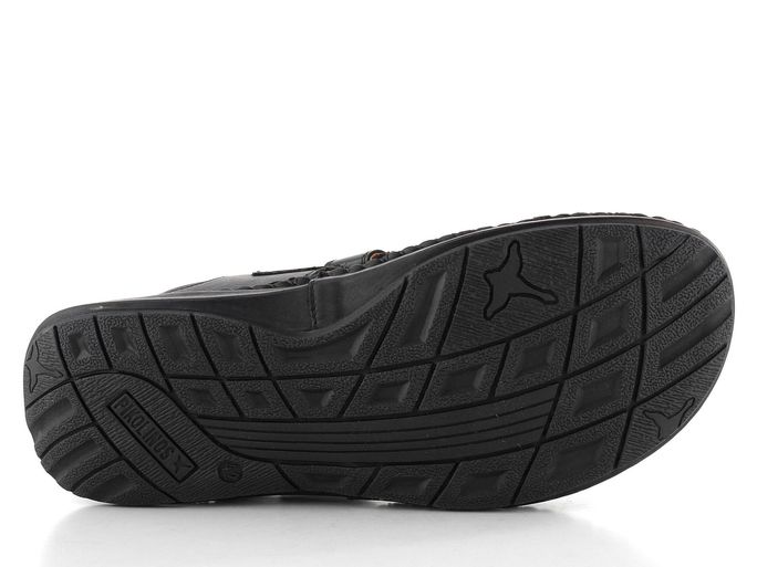 Komfortní pánské sandály od značky Pikolinos jsou ideální volbou pro jarní a letní sezónu. Díky prostornému střihu a svršku z hladké kůže v elegantní černé barvě poskytují maximální pohodlí. Oba nártové pásky lze snadno regulovat pomocí suchého zipu, což zajišťuje perfektní přizpůsobení. Měkká stélka potažená kůží a kožená podšívka přidávají na komfortu, zatímco silně polstrovaný patní pásek chrání vaši patu. Podešev z pružného latexu je spojena se svrchním dílem charakteristickým štepováním, což zaručuje dlouhou životnost. Tento model je výsledkem šitého výrobního způsobu, který podtrhuje jeho kvalitu a trvanlivost. Vyberte si tyto sandály pro pohodlné a stylové procházky městem i lehké výlety do přírody.