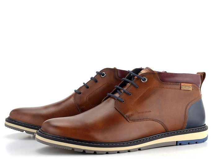 Elegantní pánské kotníkové boty značky Pikolinos nabízejí perfektní kombinaci stylu a komfortu. Vyrobené z kvalitní hladké kůže, tyto boty zaujmou svou jemně stínovanou přírodní hnědou barvou s tmavě modrými a vínovými doplňky. Kulatá špička a šněrování s kulatými tkanicemi zajišťují pohodlné nošení. Uvnitř najdete textilní podšívku a kožený lem jazyku, což přispívá k celkovému komfortu. Měkká vyjímatelná stélka potažená hladkou kůží s perforací v přední části poskytuje dodatečnou podporu. Vyztužený vnitřní opatek a měkčený kotníkový lem zaručují stabilitu a pohodlí při každém kroku. Boty jsou vybaveny bytelnou latexovou podešví ve vícebarevném provedení, která je odolná a trvanlivá. Výrobní způsob kombinující šití a lepení zajišťuje dlouhou životnost těchto bot. Ideální volba pro podzimní a zimní sezónu 2023/24.