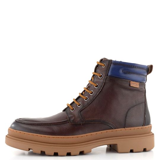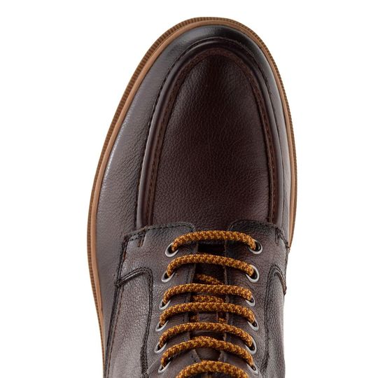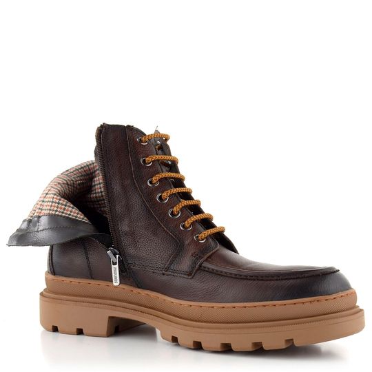 Stylový pánský kožený kotník v tmavě hnědé barvě, s vyjímatelnou stélkou a vysokou robustní podešví.