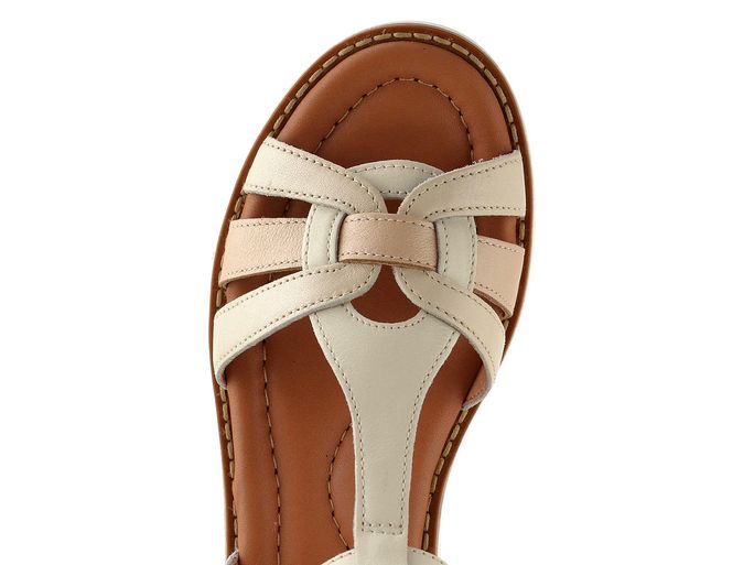 Dámské kožené sandálky v jemných odstínech krémové a béžové barvy s proplétanými pásky a extra měkkou stélkou.