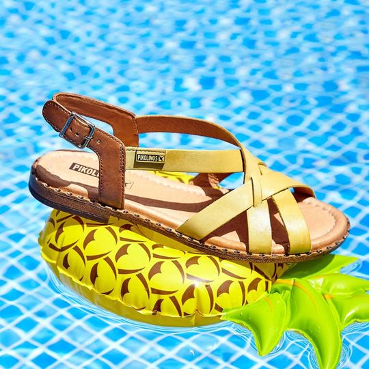 Jednoduché dámské celokožené sandálky v krásně sladěných přírodních barvách.