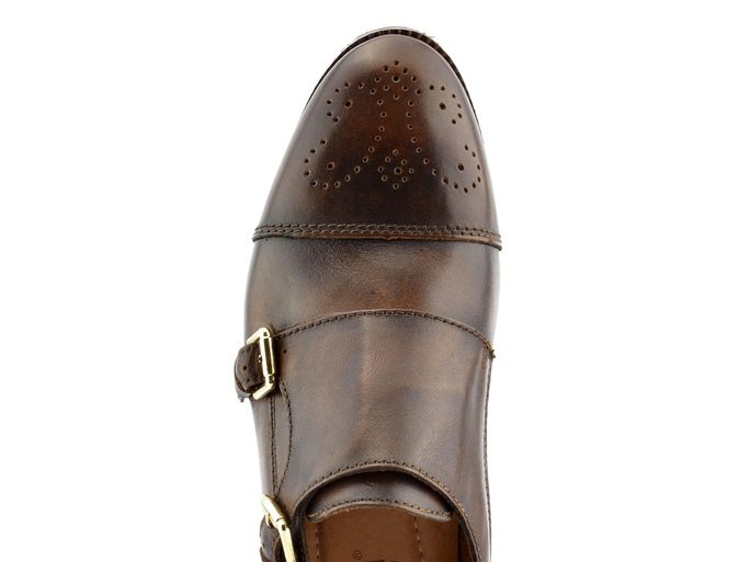 Dámské polobotky ve střihu monk v hnědé barvě a se zdobenou špičkou.