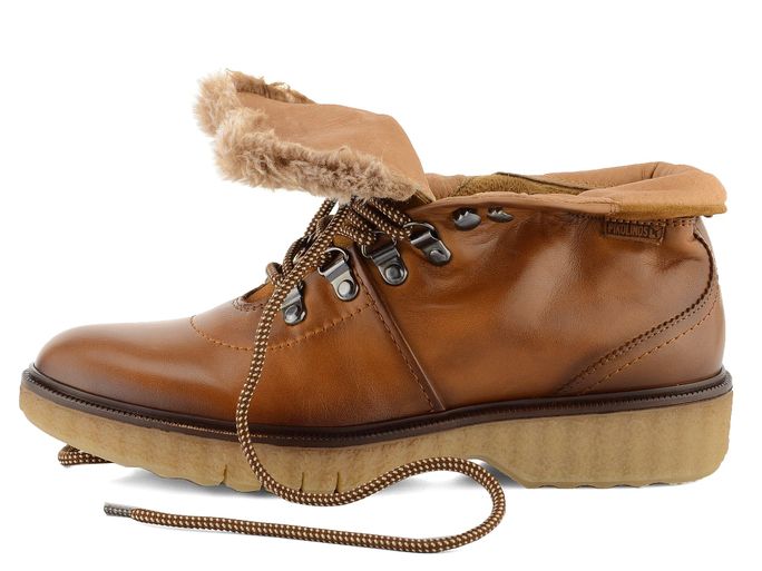 Dámský městský kotník v krásném odstínu přírodní hnědé barvy a na hrubší surové podešvi.