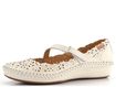 Světle smetanový odstín těchto balerín je snadno kombinovatelný s různými outfity. Přes nárt je umístěn nastavitelný pásek na suchý zip, který zajišťuje bezpečné a pohodlné nošení. Uvnitř najdete celokoženou podšívku a měkkou stélku potaženou kůží, která poskytuje extra komfort. Podešev s mírným klínkem a latexovou nášlapnou částí přináší stabilitu a pohodlí při chůzi.