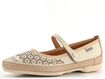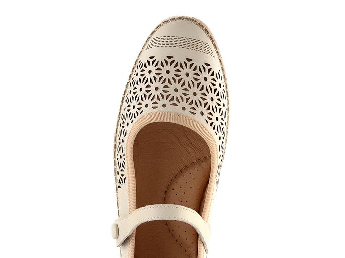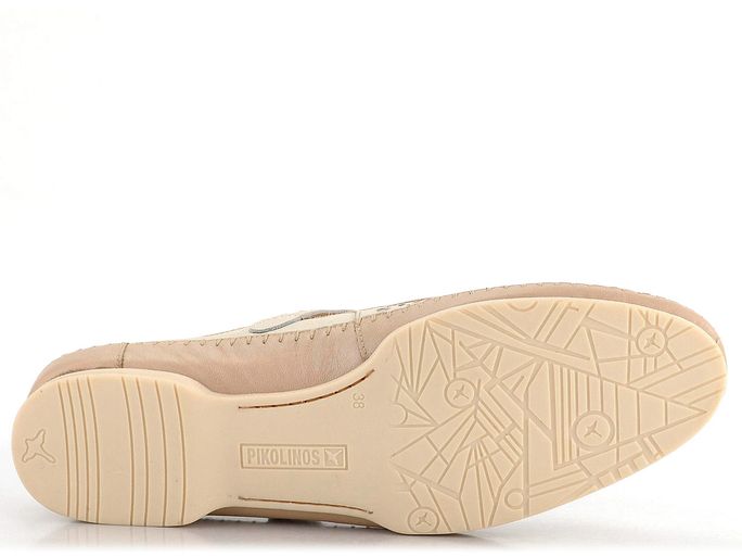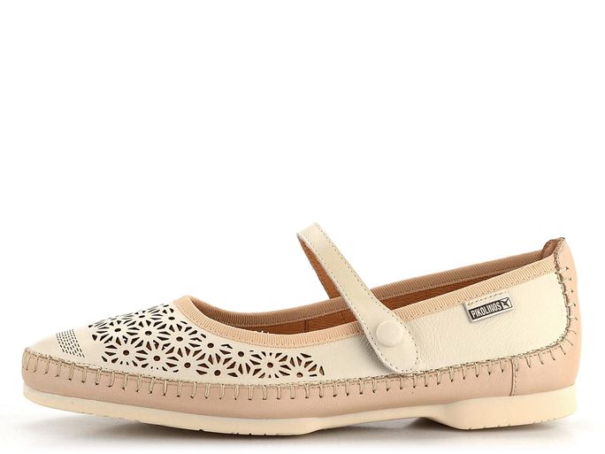 Elegantní dámské baleríny od značky Pikolinos vynikají svým precizním celokoženým zpracováním. Tento model s označením W6T-2594C1 je ideální volbou pro jarní a letní sezónu. Baleríny mají užší kulatou špičku a jsou vyrobeny z kvalitní hladké kůže v kombinaci smetanové a světle béžové barvy. Přes nárt je umístěný upínací pásek na kovový druk, který má všitou pruženku pro pohodlné nošení. Svršek je zdobený laserovým prořezáváním, které zajišťuje příjemné odvětrávání chodidla. Uvnitř najdete celokoženou podšívku a měkkou koženou stélku s podporou podélné nožní klenby. Flexibilní latexová podešev a ručně šitý spoj v obvodu dodávají obuvi originalitu a komfort. Výška podpatku je 1,3 cm, což zajišťuje pohodlí i při delším nošení. Tyto baleríny jsou skvělou volbou pro každodenní nošení do města, do kanceláře i na lehké procházky.