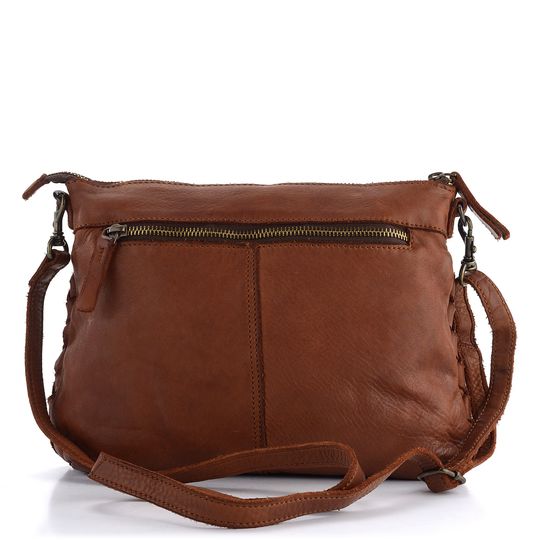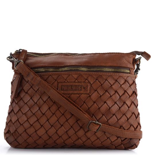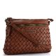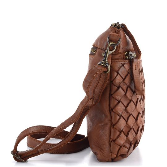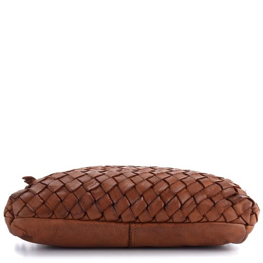 Dámská kožená kabelka s proplétanou přední stranou a se zipovými kapsami na přední i zadní straně.