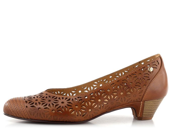Dámské lodičky značky Pikolinos jsou ideální volbou pro každou moderní ženu. Jejich prostornější střih s mírným vykrojením na nártu zajišťuje pohodlí při celodenním nošení. Vyrobené z hladké kvalitní kůže v přírodním hnědém odstínu (brandy), tyto lodičky nabízejí nejen styl, ale i funkčnost díky laserem prořezávané perforaci, která umožňuje příjemné odvětrávání chodidla. Celokožená podšívka a měkká kožená stélka přispívají k maximálnímu komfortu. S výškou podpatku 3,7 cm jsou optimální pro každodenní nošení, ať už do kanceláře nebo na lehkou procházku. Lepený výrobní způsob garantuje trvanlivost a kvalitu, kterou od značky Pikolinos očekáváte. Tyto lodičky snadno zkombinujete s kalhotami i sukní, což z nich činí univerzální kousek pro vaši jarní a letní garderobu.