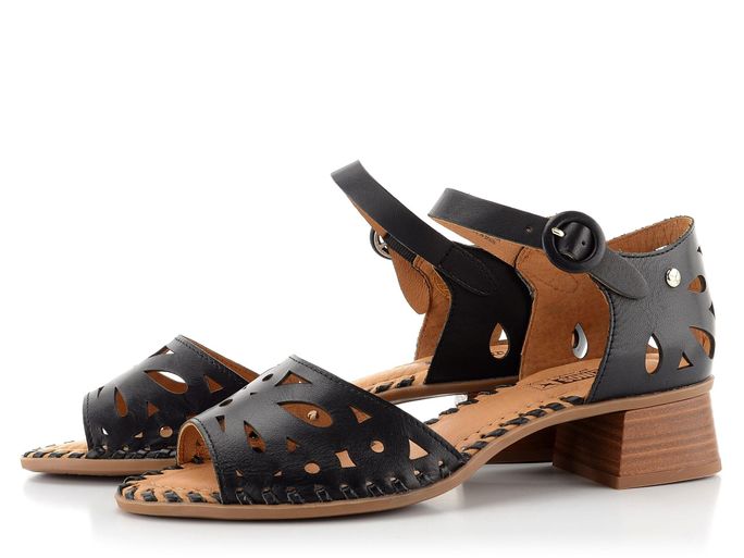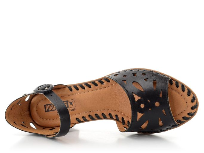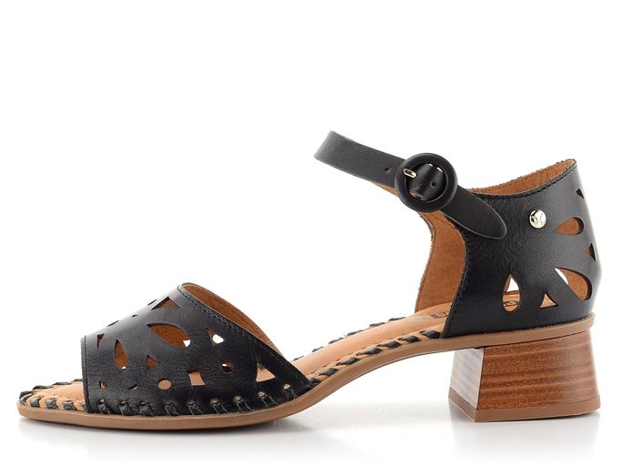 Originalita a kvalita značky Pikolinos se snoubí v těchto prořezávaných sandálech na podpatku, které jsou ideální volbou pro jarní a letní sezónu. Vyrobené z hladké kůže v elegantní černé barvě, tyto sandály zaujmou svým prořezávaným vzorem na předním pásku i patě. Díky délkově nastavitelnému pásku s kulatou sponou se dokonale přizpůsobí vašemu chodidlu.