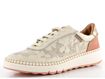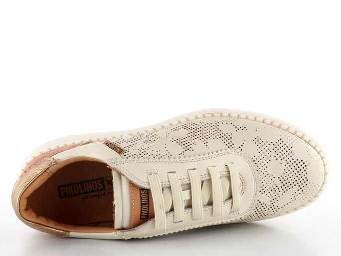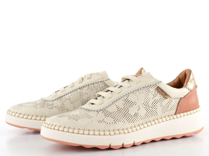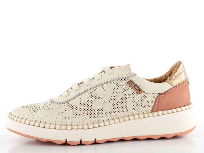 Pokud hledáte obuv, která kombinuje autentický design s trvalou kvalitou, pak jsou prozouvací polobotky od značky Pikolinos tou správnou volbou. Tyto dámské polobotky vynikají ručním zpracováním a hladkou kůží s jemným propalovaným vzorem, který dodává botám jedinečný vzhled. Velmi světlý béžový odstín s metalickými zlatými a terakotovými doplňky je ideální pro jarní a letní sezónu. Pružná plochá šněrovadla zajišťují komfortní nošení bez nutnosti dotahování. Kožená podšívka a vyjímatelná měkká vložka poskytují maximální pohodlí, zatímco precizní ruční šití zajišťuje dlouhou životnost. S výškou podpatku 3,8 cm jsou tyto boty perfektní pro městské procházky i kancelářské prostředí.