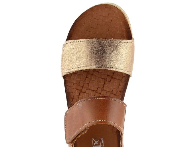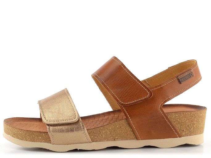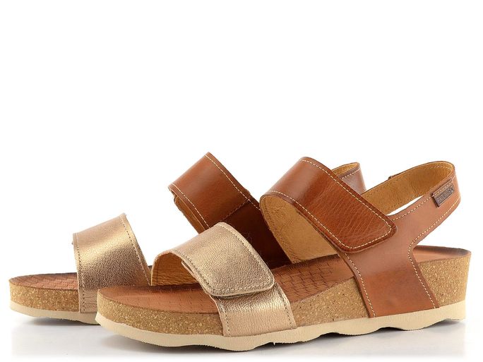 Elegantní a pohodlné sandály od značky Pikolinos jsou ideální volbou pro ženy, které hledají stylovou obuv na jaro a léto. Tyto páskové boty v hnědé a bronzové metalické barvě nabízejí dokonalý střih se širokými pásky, které zajišťují maximální komfort při nošení. Vyrobeny jsou z hladké kůže, přičemž oba nártové pásky jsou na suchý zip pro snadné obutí a přizpůsobení. Vnitřní strana pásků je rovněž kožená, což přispívá k celkovému pohodlí. Sandály mají stélku potaženou hladkou kůží a lehkou korkovou platformu s klínkem, která dodává na eleganci. Zvlněná podešev je navíc nejen zajímavě tvarovaná, ale také praktická. Výška podpatku činí 4 cm. Tento model je vyroben lepeným způsobem, což zaručuje jeho trvanlivost a kvalitu.