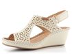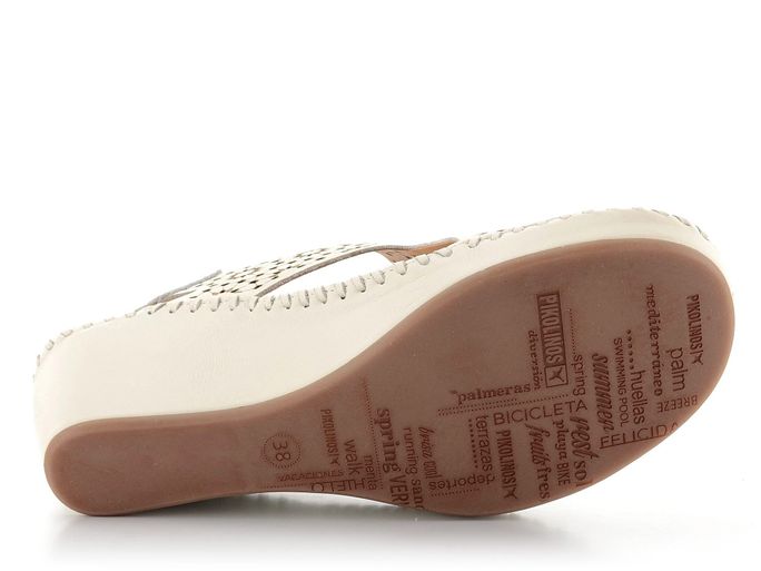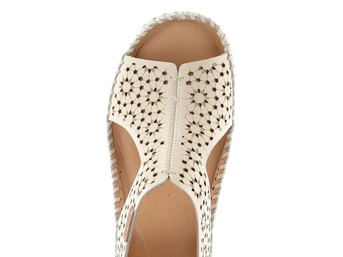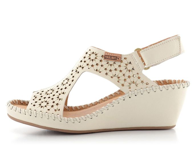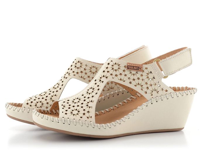 Elegantní dámské sandály od značky Pikolinos nabízejí dokonalou kombinaci stylu a pohodlí. Jsou vyrobeny z pevné, hladké kůže v krásném smetanovém odstínu, který dodá vašemu outfitu šmrnc. Sandály mají kulatý, prostorný tvar a laserem prořezávanou perforaci, která zajišťuje nejen estetický vzhled, ale také lepší prodyšnost. Uvnitř najdete celokoženou podšívku a příjemně měkkou stélku pro maximální komfort. Patní pásek na suchý zip usnadňuje obouvání a zajišťuje pevné držení nohy. Vyšší potažená podešev s klínkem a latexovou nášlapnou částí poskytuje stabilitu a pohodlí po celý den. Výška podpatku je 6 cm, což je ideální pro celodenní nošení. Sandály jsou ideální volbou pro jaro a léto, ať už do města, kanceláře nebo na lehkou procházku.