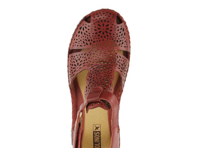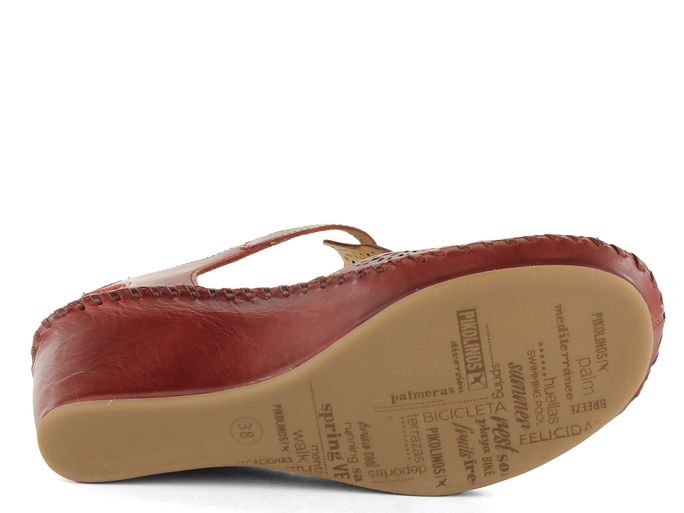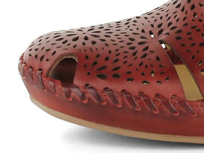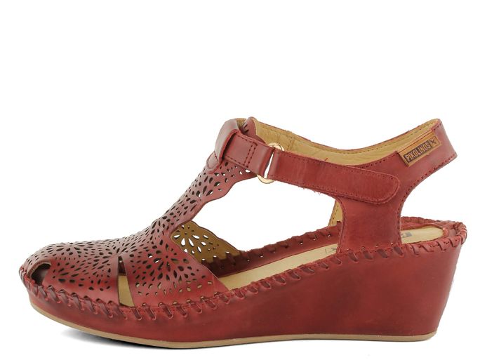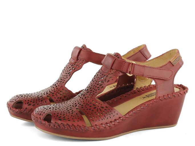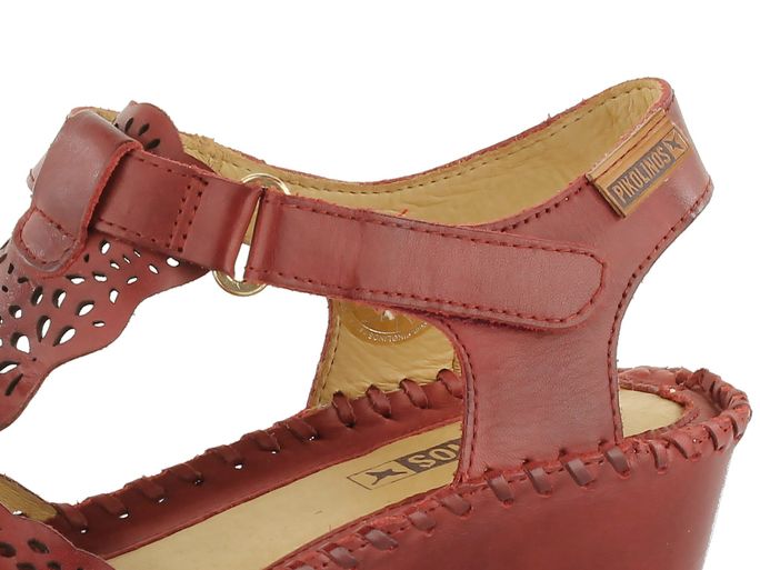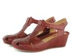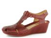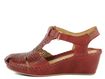 Dámské pohodlné sandály v červené barvě s upínacím páskem na suchý zip a s potaženým klínkem.