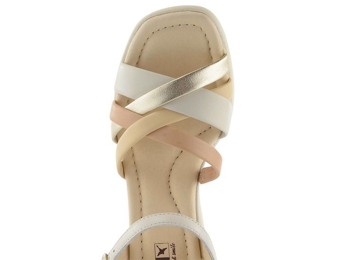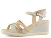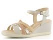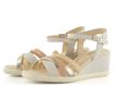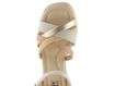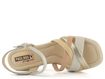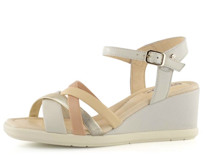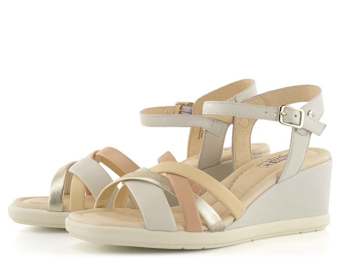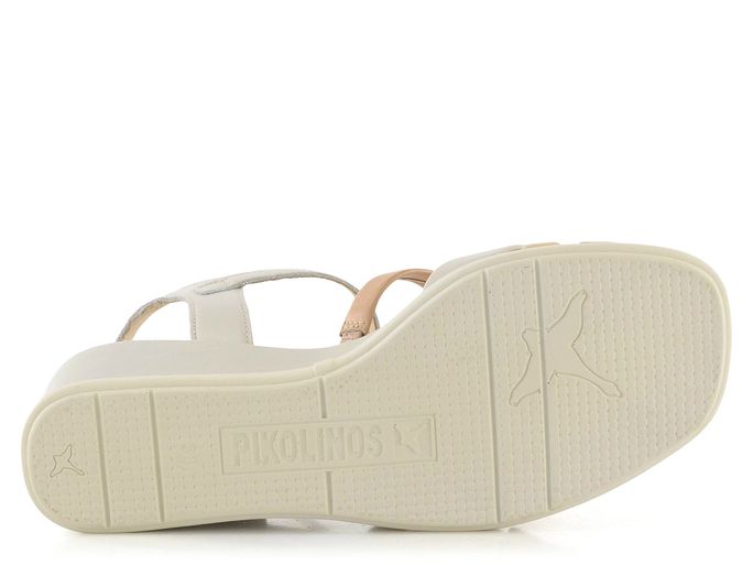 Dámské páskové sandály na klínu od španělské značky Pikolinos představují ideální volbu pro jarní a letní sezónu. Tyto elegantní sandály kombinují krémovou, béžovou a zlatou barvu, což dodává botám luxusní vzhled. Svršek i podšívka jsou vyrobeny z kvalitní kůže, což zaručuje dlouhou životnost a pohodlí. Nárt je tvořen variací propletených pásků, z nichž jeden má všitou pruženku pro lepší přizpůsobení. Kotníkový pásek s délkovou regulací a pruženkou poskytuje pevné a pohodlné uchycení. Sandály mají vyšší potažený klínek s výškou 6,5 cm a pevnou syntetickou podešev, která zajišťuje stabilitu. Celokožená podšívka a měkká, prošívaná stélka přispívají k maximálnímu komfortu. Tento model je ideální pro městské prostředí, lehkou procházku nebo formální příležitosti.
