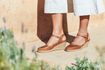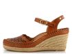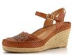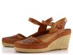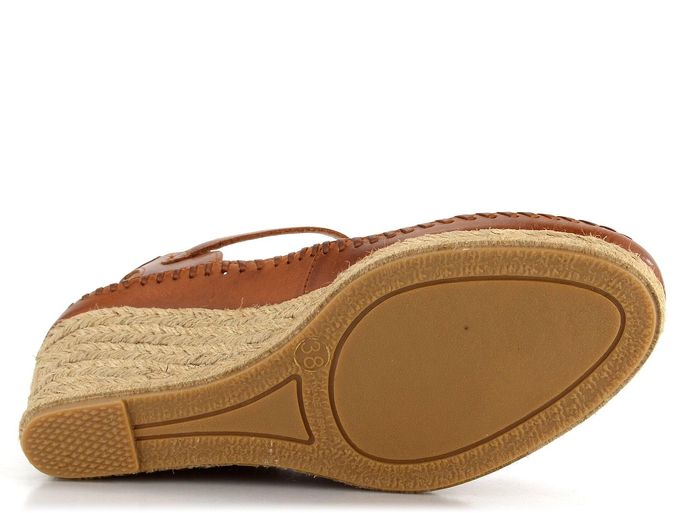 Dámské kožené sandály na klínu v přírodní hnědé barvě s propalovaným vzorem na špičce.