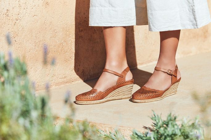 Sandály mají kotníkový pásek na suchý zip s dekorativní sponou, což usnadňuje obouvání a zajišťuje pevné držení na noze. Uvnitř najdete celokoženou podšívku a měkkou stélku s podporou podélné nožní klenby pro maximální komfort při chůzi. Klínek vysoký 6,5 cm je potažen jutovým opletem, což dodává sandálům stylový vzhled.