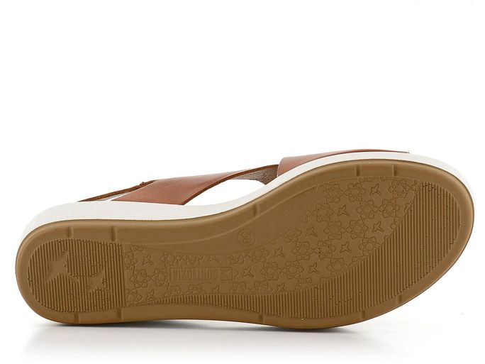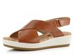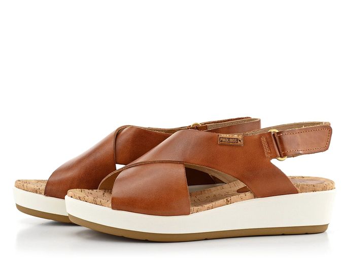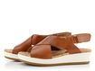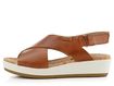 Dámské, velmi pohodlné sandály s kříženými širokými pásky v přírodní hnědé barvě a s patním páskem na suchý zip.