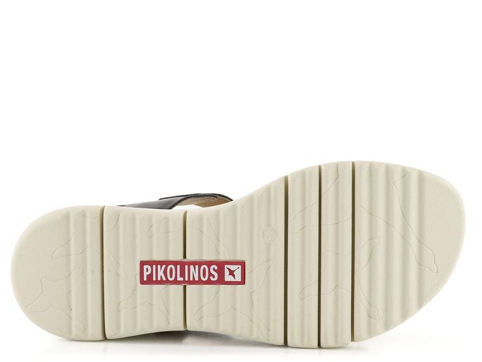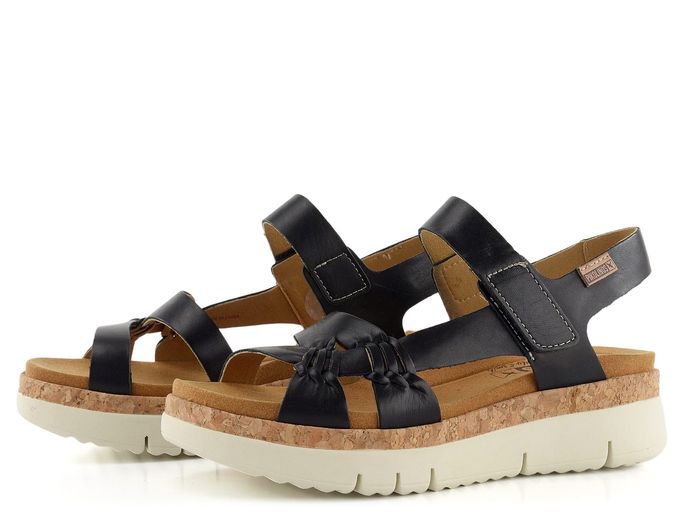 Dámské sandály na platformě Palma Black W4N-0968 od značky Pikolinos přináší kombinaci elegance a pohodlí. Tyto sandály v oblíbené černé barvě jsou vyrobené z hladké kůže a poskytují dokonale padnoucí střih se širokými pásky. Kotníkový pásek na suchý zip zajišťuje snadné obouvání a pevné držení nohy. Vnitřní strana pásků je podšitá syntetikou pro maximální komfort. Sandály disponují tvarovanou stélkou potaženou broušenou syntetikou a lehkou platformou s malým klínkem, ozdobenou dekorativním proužkem v dekoru korku. Výška podpatku je 5 cm, což zajišťuje pohodlí i při delším nošení. Tyto sandály jsou ideální volbou pro jarní a letní sezónu, ať už do města, kanceláře či na lehkou procházku.