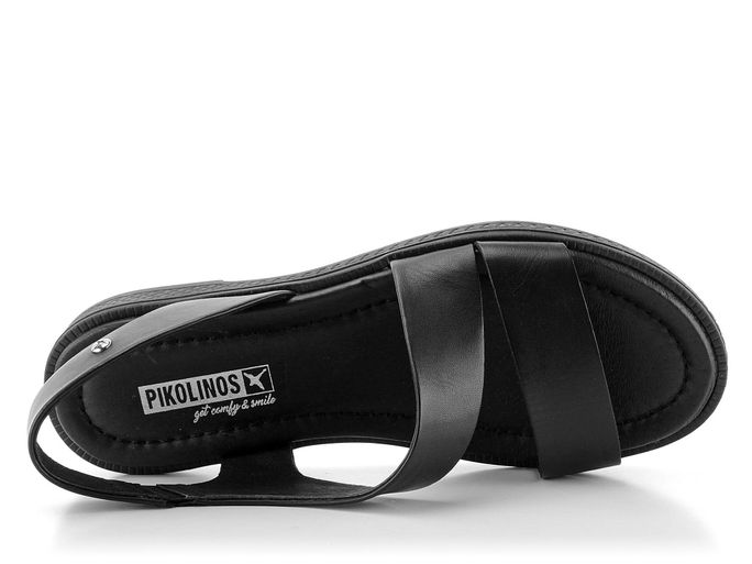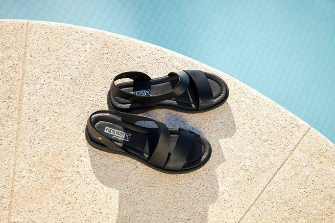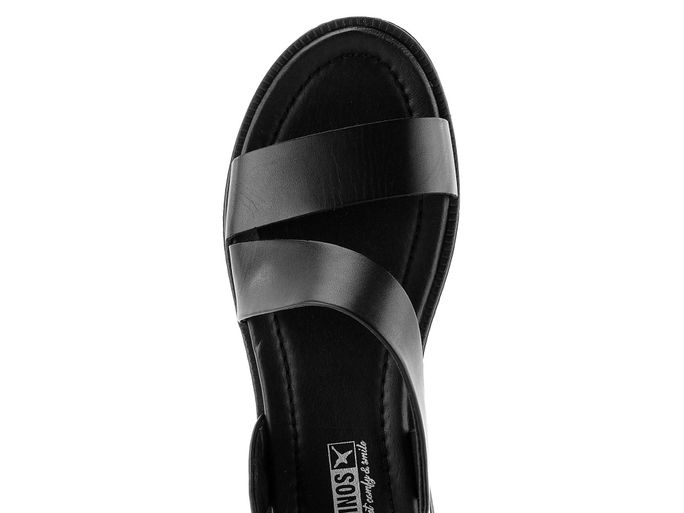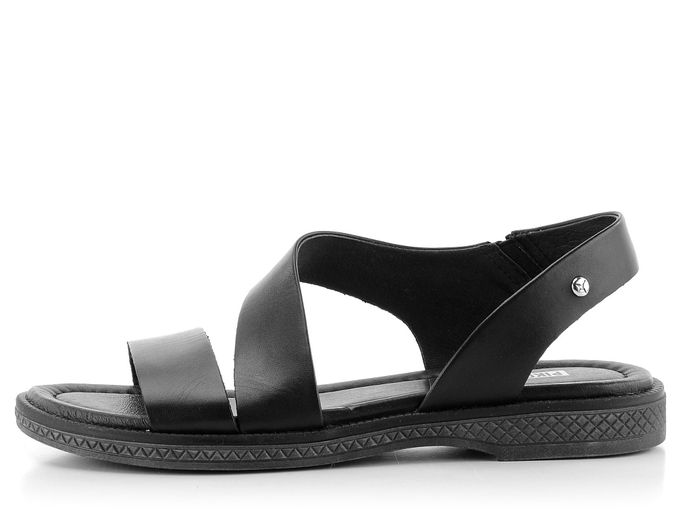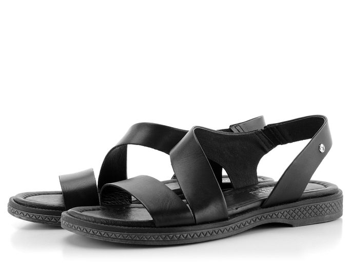 Luxusní jednoduché dámské kožené sandálky z černé kůže s patním páskem s našitou pružinkou.