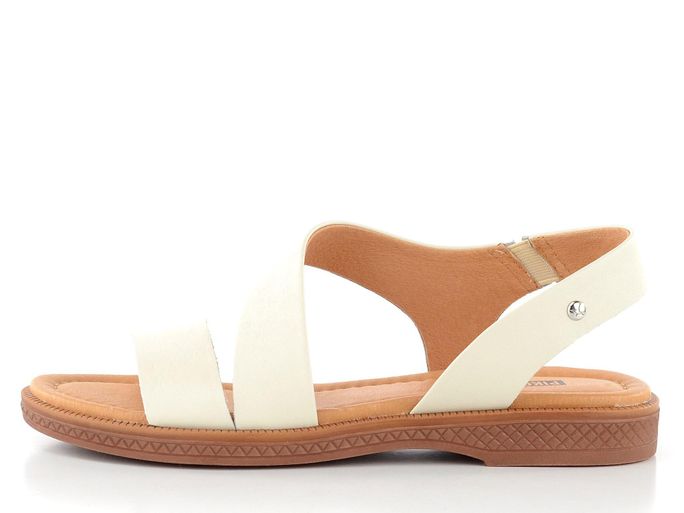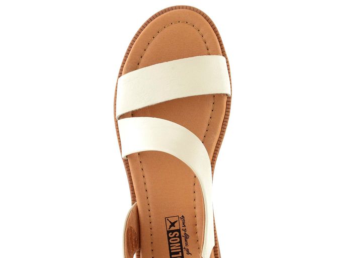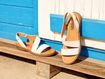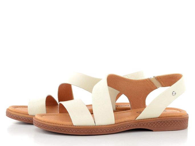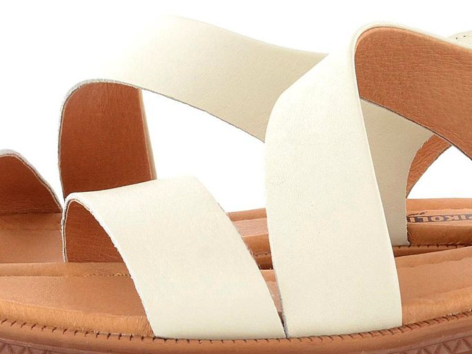 Luxusní jednoduché dámské kožené sandálky ze světlé kůže s patním páskem s našitou pružinkou.