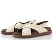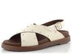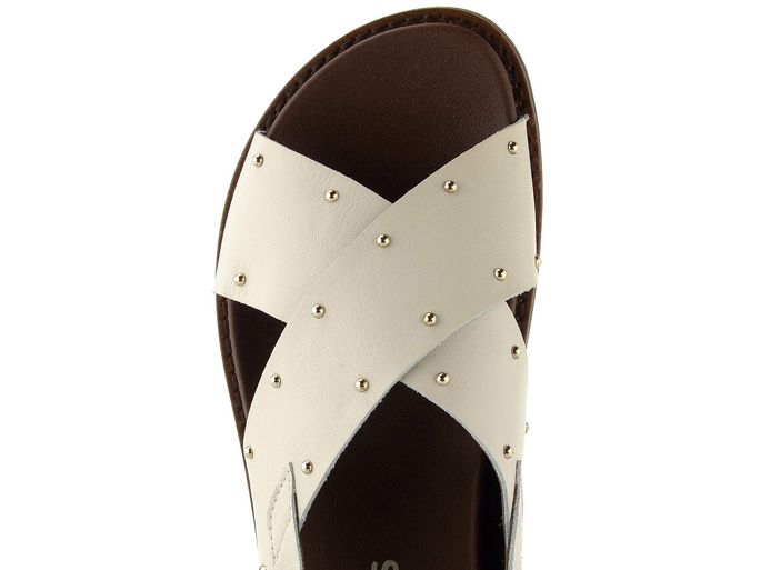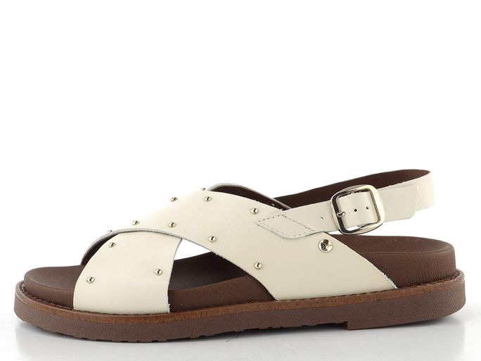 Dámské kožené sandálky ve smetanové barvě zdobené kovovými nýtky.
