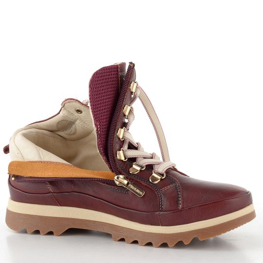 Dámský vycházkový kožený kotník na šněrování, vybavený zipem a tvarovanou vyjímatelnou stélkou.