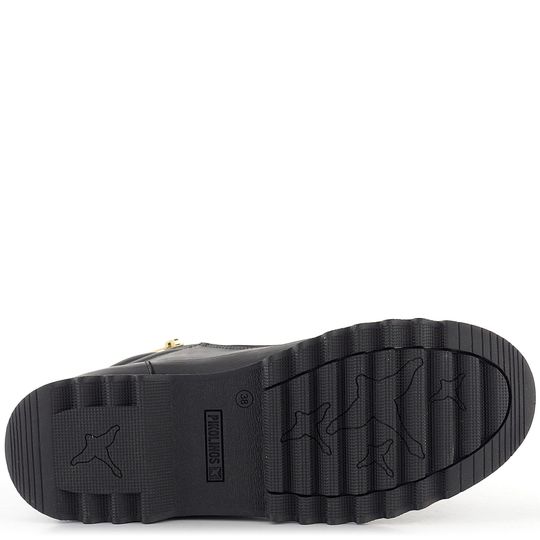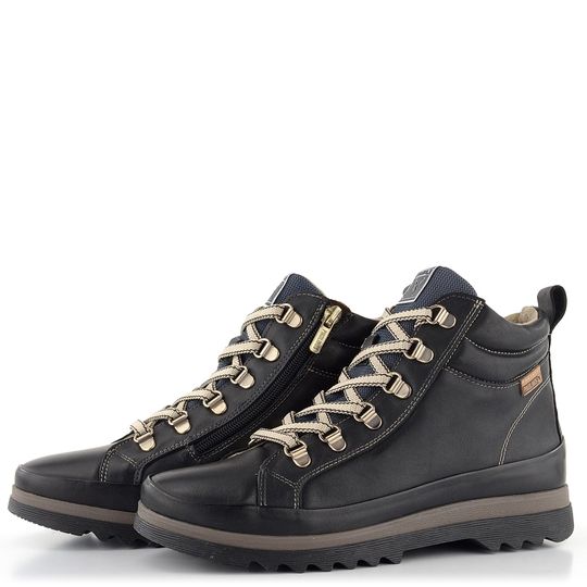 Dámské kožené kotníkové boty ve stylu pohorek od značky Pikolinos představují ideální volbu pro podzimní a zimní sezónu. Tyto boty zaujmou prostornou kulatou špičkou a jsou vyrobeny z poddajné hladké kůže v kombinaci s textilním jazykem. Vynikají černou barvou s kontrastním štepováním, měkčeným prošívaným kotníkovým lemem a šněrováním s pohyblivými kovovými očky. Pro snadné obutí je na vnitřní straně zip. Uvnitř najdete podšívku z broušené textilie a syntetické vnitřní lemy. Vyjímatelná textilní stélka z paměťové pěny poskytuje podporu podélné nožní klenby, patní absorbér a perforaci v přední části. Vysoce flexibilní latexová podešev s hrubým, protiskluzovým vzorkem zajišťuje bezpečnost na každém kroku. Výška kotníku je 9,5 cm (bez podešve). Tento lepený výrobní způsob garantuje dlouhou životnost a komfort při nošení.
