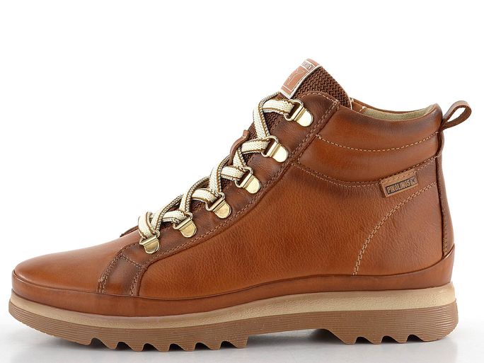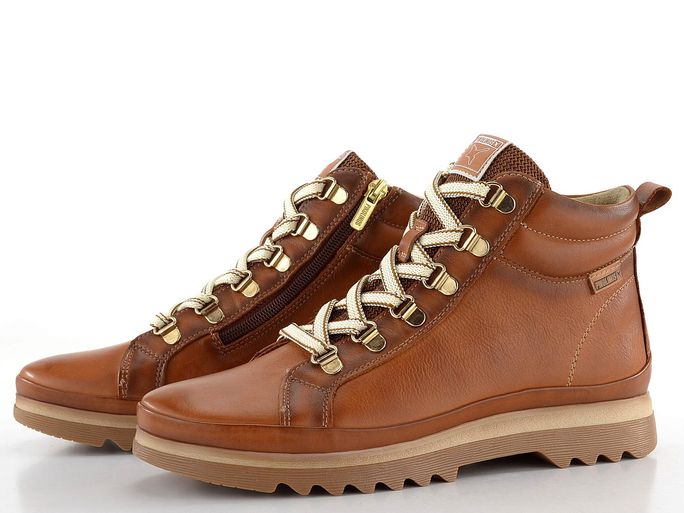 Dámský kožený kotníček v pohorkovém stylu od značky Pikolinos je ideální volbou pro podzimní a zimní sezónu. Tento model z kolekce pro ženy nabízí prostornou kulatou špičku a je vyroben z poddajné hladké kůže s textilním jazykem, což zaručuje maximální pohodlí. Boty mají měkčený, prošívaný kotníkový lem a šněrování s pohyblivými kovovými očky, které spolu se zipem na vnitřní straně umožňují snadné obutí. Uvnitř najdete podšívku z broušené textilie a syntetické vnitřní lemy. Vyjímatelná textilní stélka z paměťové pěny poskytuje podporu podélné nožní klenby a má perforaci pro lepší prodyšnost. Vysoce flexibilní latexová podešev s hrubým, protiskluzovým vzorkem zajišťuje bezpečný krok. Výška podpatku je 3 cm a výška kotníku bez podešve činí 9,5 cm. Tento model je vyrobený lepeným způsobem, což garantuje jeho trvanlivost a kvalitu.