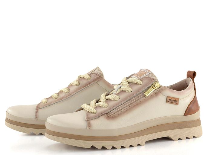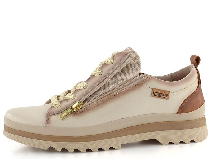 Vychutnejte si pohodlí a styl s dámskými koženými polobotkami od španělské značky Pikolinos. Tyto boty v pohorkovém střihu nabízejí prostornou kulatou špičku a jsou vyrobeny z poddajné hladké kůže, která je doplněna textilním jazykem. Krémová barva se stínováním podél švů a přírodní hnědý odstín na patě dodávají botám jedinečný vzhled.