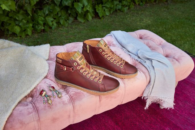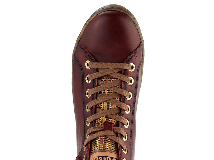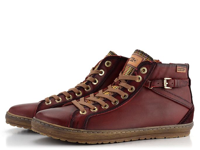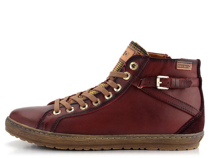 Dámský freestylový kotník od značky Pikolinos je ideální volbou pro podzimní a zimní sezónu. Tento model vyniká svým prostorným kulatým střihem a kombinací hladké, vysoce kvalitní kůže s úpletovou textilií na jazyku a semišovou kůží na patě. Tmavě vínový odstín je elegantně doplněn zlatým kováním a kontrastním jazykem, což dodává botám moderní vzhled.