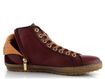 Dámský nevyteplený stylový kotník v tmavě vínové barvě se zlatými doplňky a barevným jazykem.