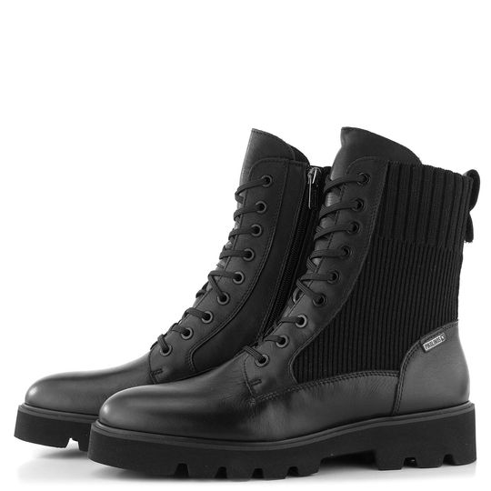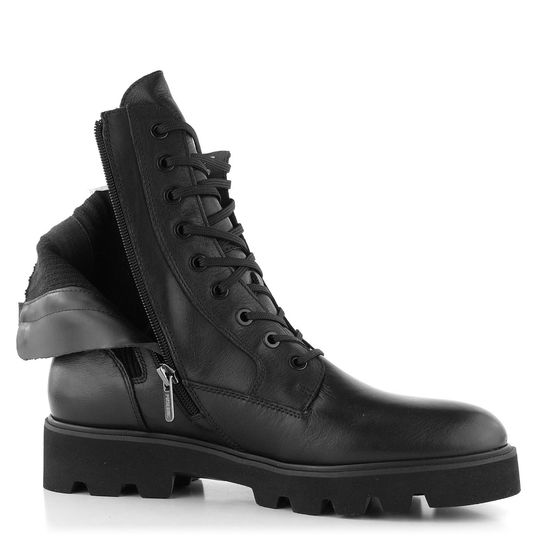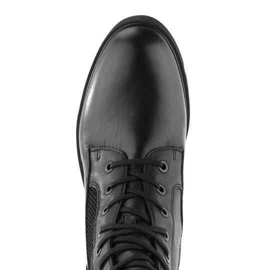 Dámský nevyteplený kožený kotník s pružným nápletem v oblasti kotníku, šněrováním a postranním zipem.