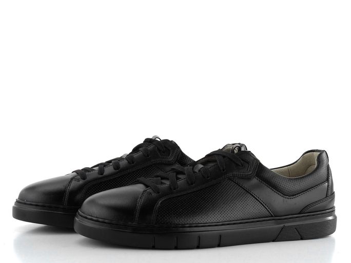 Pánské kvalitní a stylové kožené šněrovací polobotky/tenisky v černé barvě.