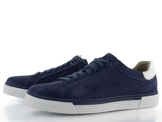 Pánské semišové šněrovací polobotky/tenisky v tmavě modré barvě s kvalitní latexovou podešví a vyjímatelnou vložkou.