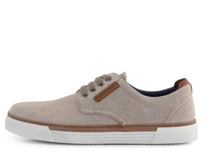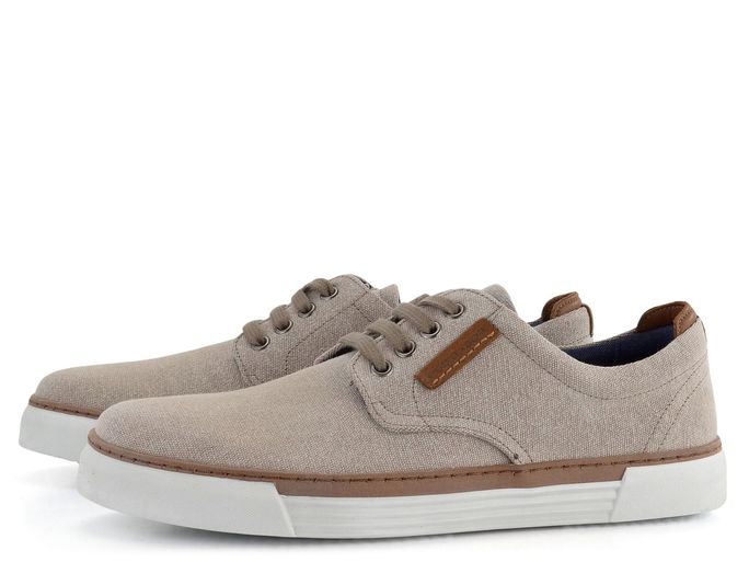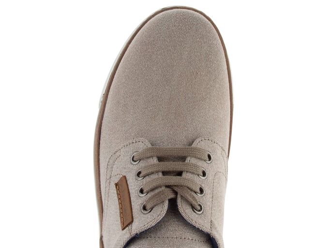 Ležérní model pánských šněrovacích plátěných polobotek v béžové barvě s vyjímatelnou stélkou a kvalitní latexovou podešví.