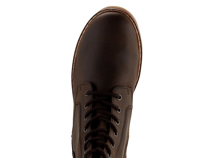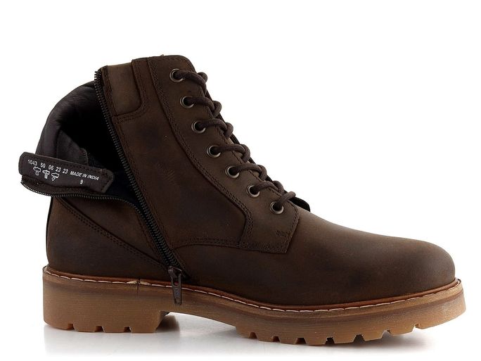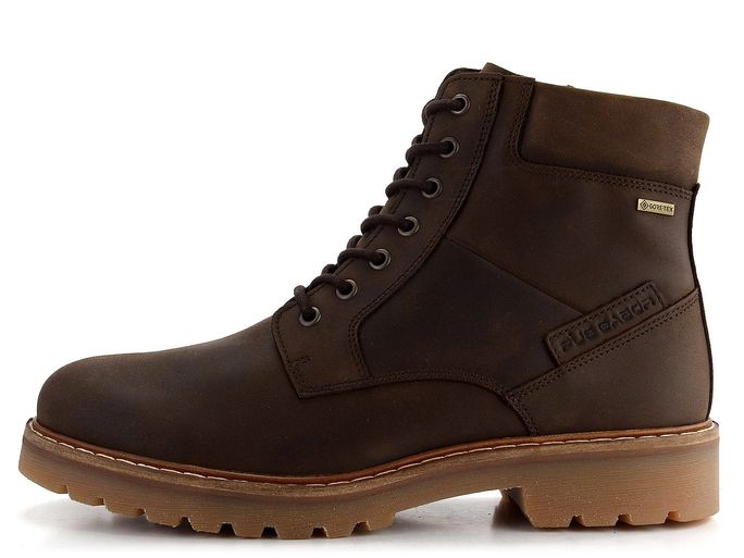 Robustní pánský kožený kotník v tmavě hnědé barvě, s vyjímatelnou stélkou, funkční membránou a vnitřní teplou podšívkou.